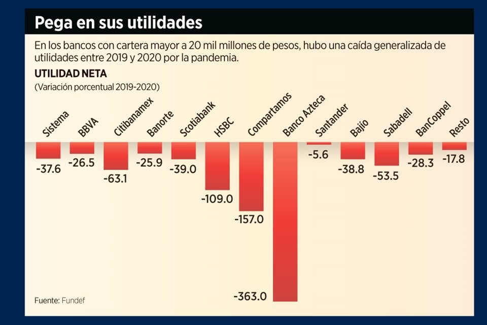 De los 20 bancos con una cartera mayor a 20 mil millones de pesos, que instrumentaron el programa de diferimiento de pagos, ninguno se acogió al programa de reestructuras de la Comisión Nacional Bancaria y de Valores (CNBV), de acuerdo con un análisis de la Fundación de Estudios Financieros (Fundef).