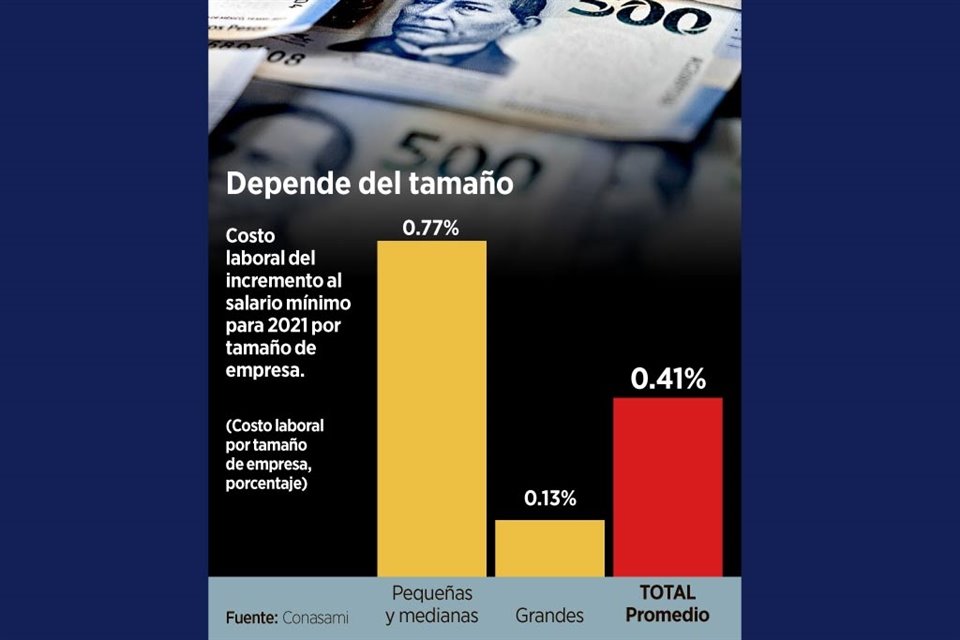 El alza al salario mínimo para el 2021 incrementará menos de uno por ciento el costo laboral para las empresas, por lo que no tendrá un efecto adverso para la economía, afirmó Luis Felipe Munguía, presidente de la Comisión Nacional de Salarios Mínimos (Conasami).
