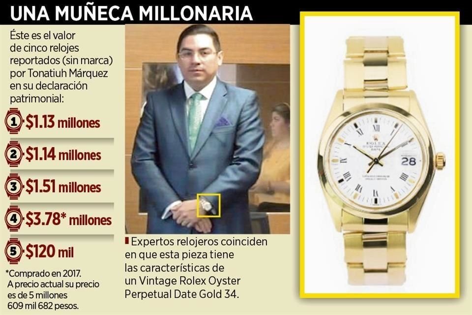 Todos los relojes fueron pagados en efectivo, y uno de ellos está valuado en 3.7 millones de pesos, aunque en la declaración no se definen marcas.