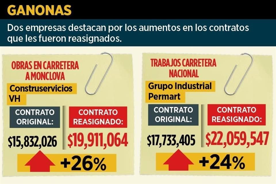 La Secretaría de Comunicaciones y Transportes (SCT) en Nuevo León, con José Adalberto Vega Regalado como delegado, canceló, en apenas un mes, 12 contratos millonarios ya licitados para reasignarlos a otras empresas con aumentos en los pagos de hasta 26 por ciento.