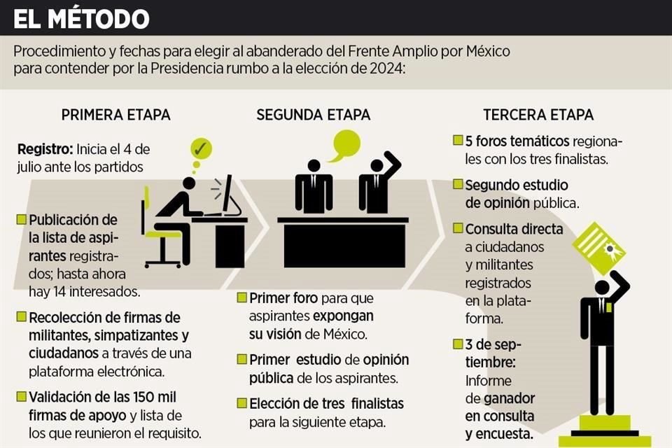 Mientras líderes de PAN, PRI y PRD celebraban ayer el acuerdo alcanzado con organizaciones ciudadanas para crear el Frente Amplio por México de cara al 2024, aspirantes a la nominación expresaban sus dudas respecto a los alcances del método de selección y demandaban incorporar la votación digital.