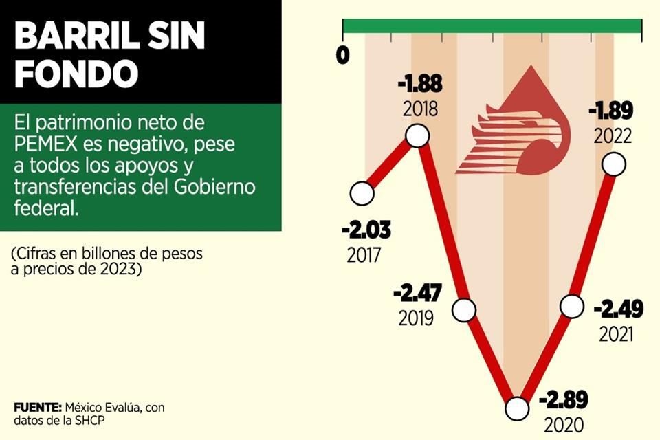A pesar de la promesa presidencial de rescatar a Pemex y de la fuerte inyección de recursos que recibe desde el Gobierno, la petrolera se encuentra en una situación de "quiebra técnica", con un patrimonio negativo de un billón 895 mil millones de pesos al cierre de 2022.