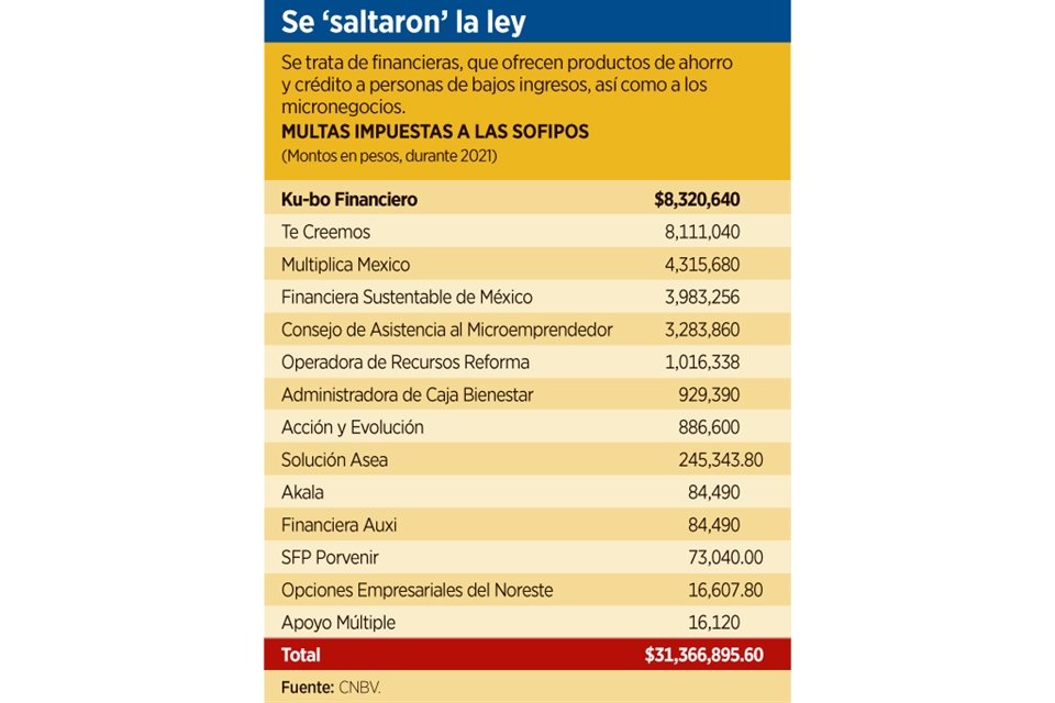 Las Sociedades Financieras Populares (Sofipos) fueron objeto de una 'lluvia' de multas durante la pandemia, al recibir 300 por ciento más sanciones por parte de la autoridad.