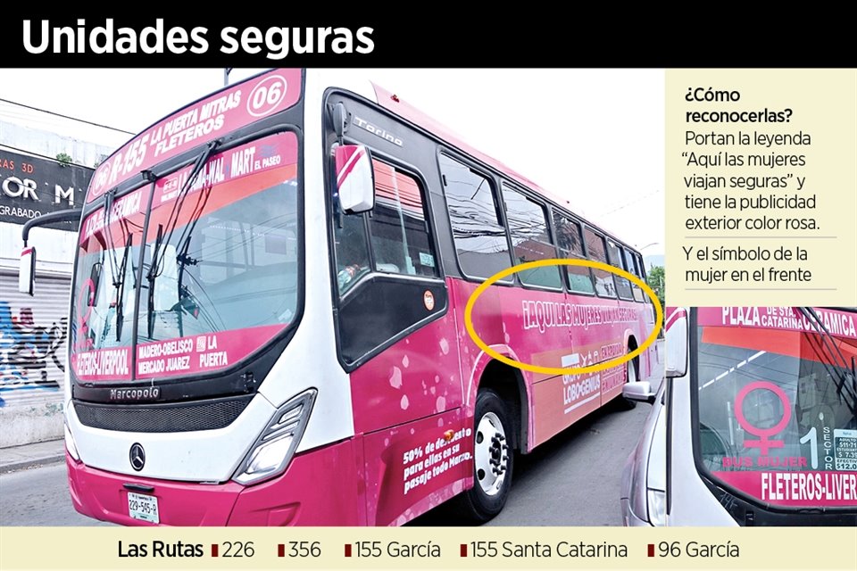 Las unidades que darán este beneficio del cobro y que cuentan con botones de pánico podrán ser distinguidas porque portan la leyenda "Aquí las mujeres viajan seguras" en color rosa. Crédito: Julio Salazar