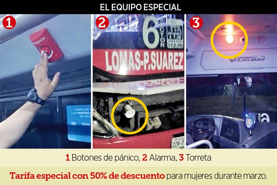 Al menos 20 unidades del Grupo Lobo Genius fueron habilitadas con pasamanos y botones de pánico para que sean utilizadas por mujeres. Crédito: Especial