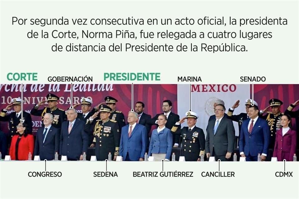 Distante e institucional. Así fue el reencuentro entre el Presidente Andrés Manuel López Obrador y la presidenta de la Corte, Norma Piña, durante la conmemoración de la Marcha de la Lealtad.