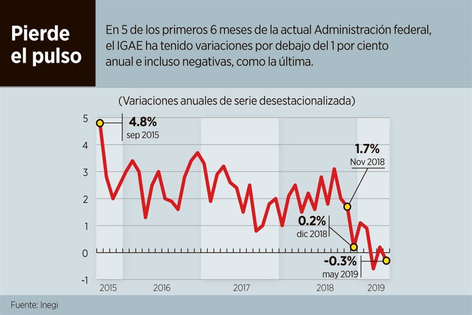 Luego de que el Inegi reportó ayer por la mañana que en mayo pasado el Indicador Global de la Actividad Económica (IGAE) retrocedió 0.3 por ciento respecto al mismo mes del 2018 (0.03 si se mide respecto al mes previo), la correduría JP Morgan estimó que en el segundo trimestre el PIB retrocedió 0.5 por ciento.
