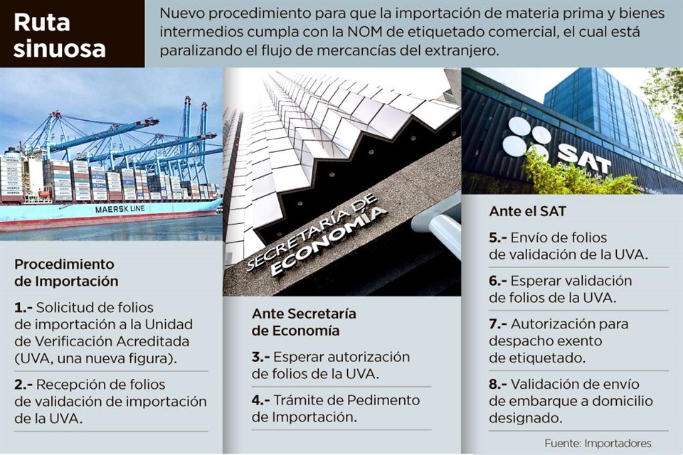 Las nuevas reglas de la NOM de etiquetado comercial, con trámites adicionales que extendió la Secretaría de Economía (SE) a bienes intermedios y no sólo de consumo final desde el 1 de octubre, paralizaron las importaciones que requiere la industria para sus procesos de producción.