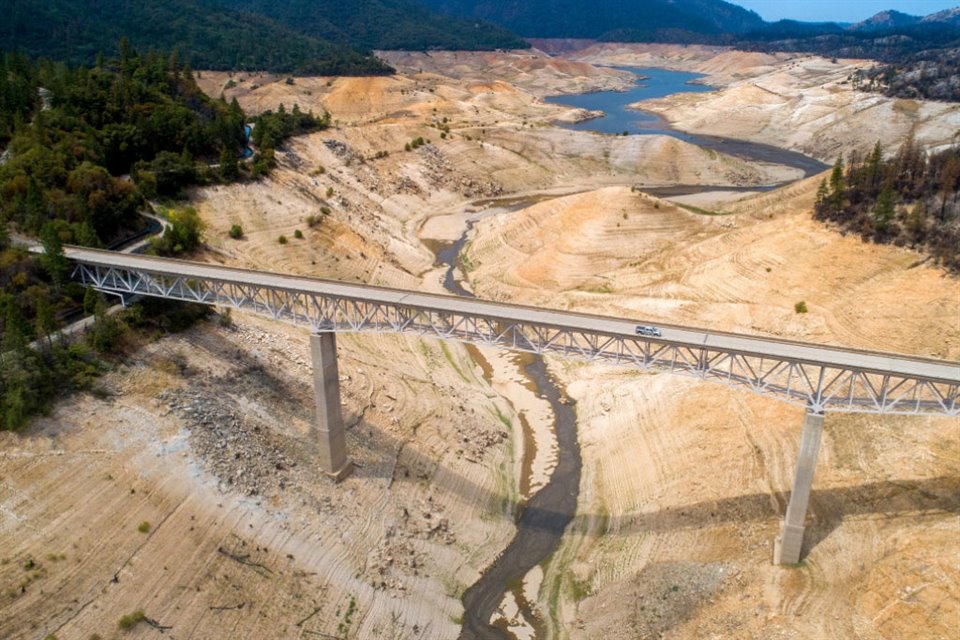 Vista del lago Oroville, en California, cuyos niveles de agua se encuentran en mínimos récord. Crédito: Especial