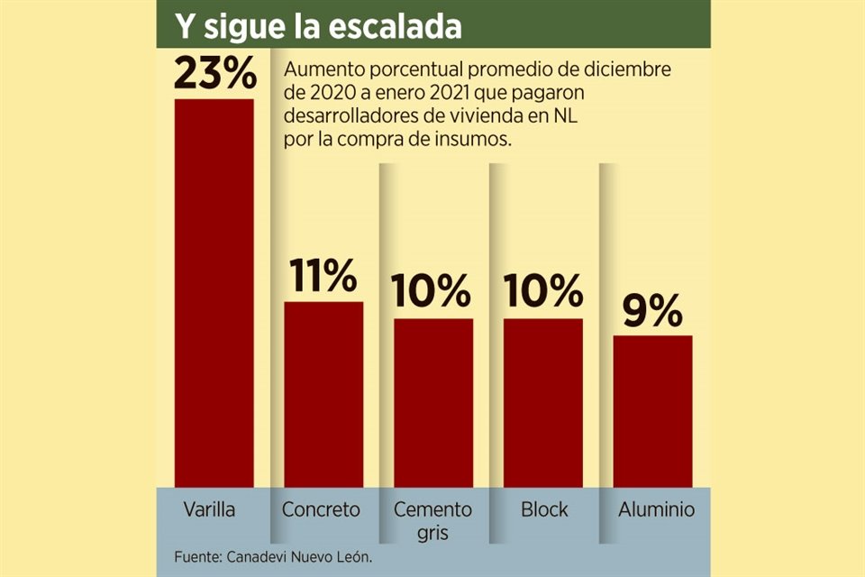 Los precios de los materiales para construcción siguen al alza y en Nuevo León la industria desarrolladora de vivienda anticipó que esto podría provocar, de entrada, un aumento de entre 6 y 6.5 por ciento en el precio final de las casas nuevas.