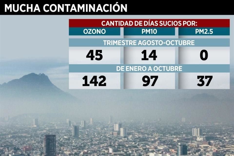 El ozono se mantuvo como el principal contaminante del área metropolitana durante agosto, septiembre y octubre, al registrar la mitad de los días fuera de la Norma de Salud.