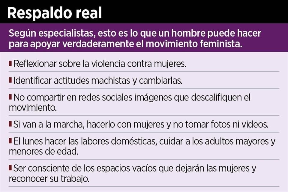 Especialistas en violencia de género coinciden en que si un hombre quiere en verdad sumarse al movimiento histórico de las mujeres no basta con decir que lo apoyan, sino que deben reconocer los abusos contra ellas.
