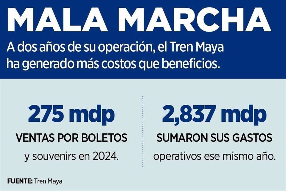 A dos años de su inauguración, el subsidio federal a la operación del Tren Maya equivale a 10 veces su ingreso por venta de boletos y souvenirs.