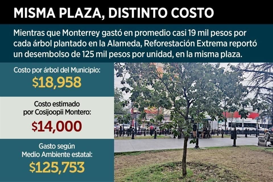Para rehabilitar las áreas verdes de La Alameda Mariano Escobedo, Reforestación Extrema plantó 308 árboles, lo que implicó un gasto de 38 millones 732 mil pesos, es decir, que por cada unidad desembolsó más de ¡125 mil pesos!