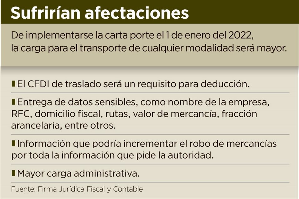 Debido a que el CFDI de traslado no es un documento con efectos fiscales, al no representar ni un ingreso o egreso, hay posibilidades de ampararse contra el complemento a la carta porte, detalló Samuel Orlando García Villarreal, socio director de la Firma Jurídica Fiscal y Contable.