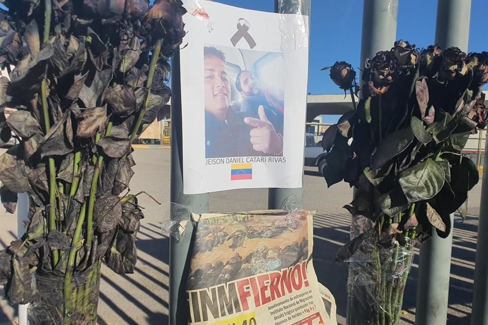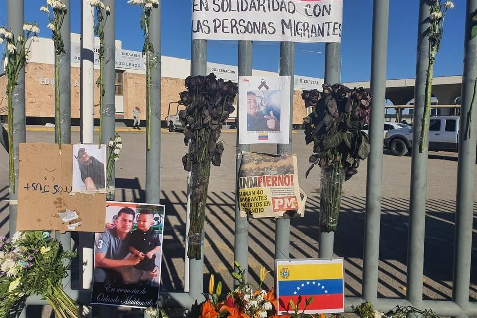 Los rostros de los migrantes heridos y fallecidos colocados en el memorial montado en el exterior del Instituto Nacional de Migración aumentan el dolor de sus connacionales que demandan justicia.