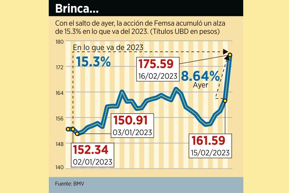 El mercado vio con buenos ojos el plan de Femsa para separarse de Heineken, y prueba de ello es que el valor de su acción UBD se disparó ayer 8.64 por ciento al cerrar en 175.94 pesos.