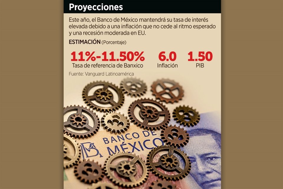 El Banco de México (Banxico) mantendrá su tasa de interés en un rango de entre 11 y 11.50 por ciento al cierre de este año y será hasta 2024 cuando inicie un ciclo de reducciones, anticipa Vanguard.