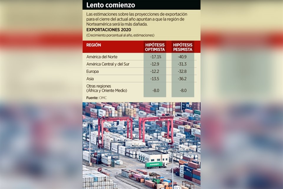Este año se espera que entre en vigor el T-MEC y también se prevé que sea precisamente la región de Norteamérica la que enfrente la mayor caída en exportaciones, frente a otros bloques comerciales.