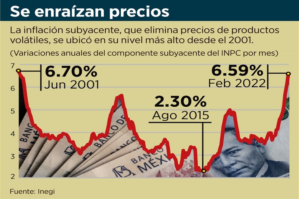 La inflación en el País se aceleró a una tasa anual de 7.28 por ciento en febrero pasado, resultado que superó la expectativa de analistas y tras el cual el subgobernador del Banco de México (Banxico) Jonathan Heath anticipó que se mantendrá elevada durante más tiempo del previsto.