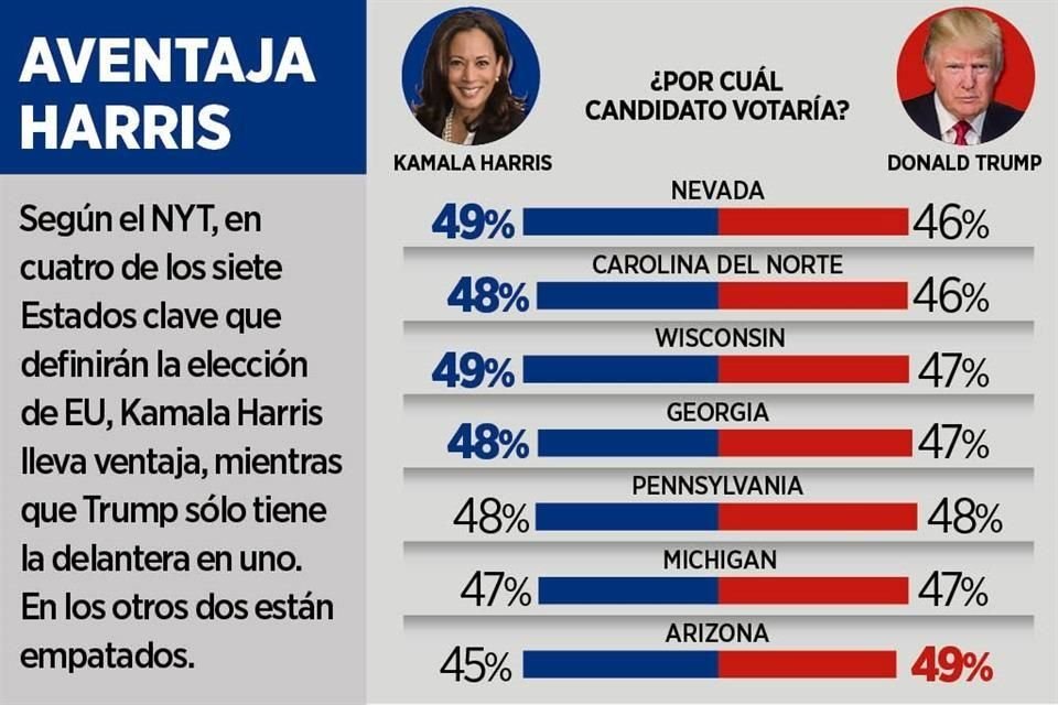 La candidata demócrata a la Casa Blanca, Kamala Harris, y su rival republicano, Donald Trump, llegan empatados a la elección de mañana que será clave para el futuro de Estados Unidos, México y el mundo.
