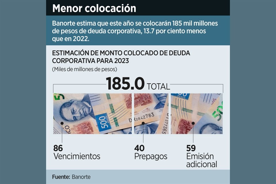 Ante una eventual recesión, este año habrá mayor cautela por parte de emisoras del mercado de deuda corporativa, por lo que se espera que el monto colocado sea 13.7 por ciento menor al de 2022, estima Banorte.