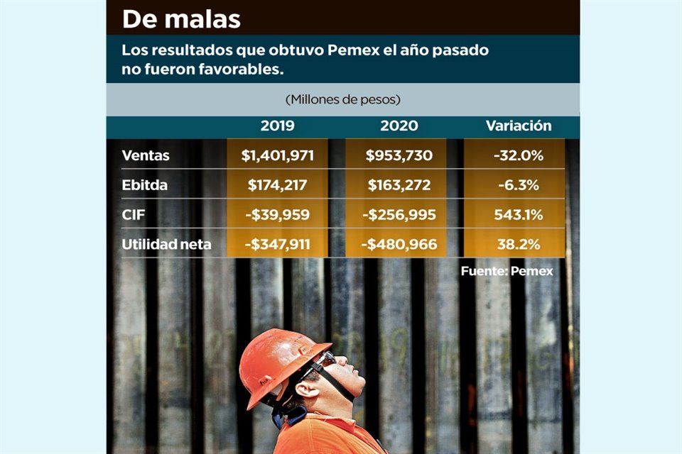 Aunque en el último trimestre del 2020 Pemex sorprendió al reportar una utilidad neta de 124 mil 210 millones de pesos, el repunte fue insuficiente para mejorar sus resultados anuales.