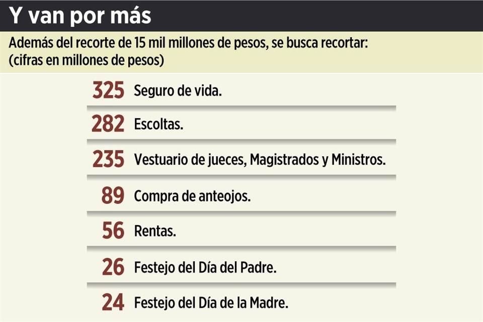 La mayoría oficialista en la Cámara de Diputados se alista hoy a consumar el recorte de más de 15 mil millones de pesos al Poder Judicial.