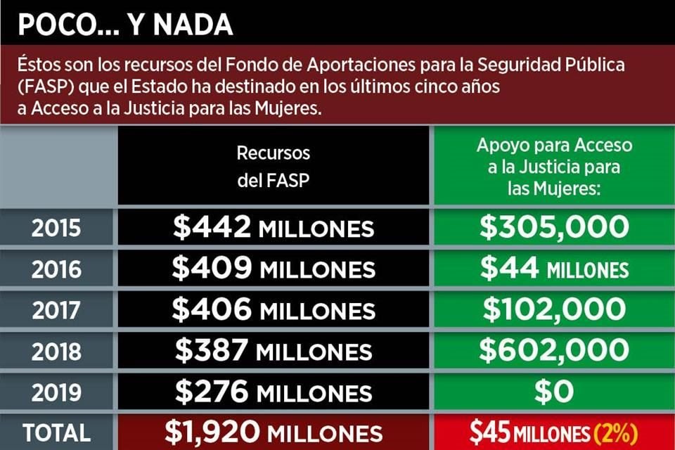 Pese a la problemática de la violencia de género que padece Nuevo León, en el 2019 el Gobierno estatal no distribuyó apoyos del Fondo de Aportaciones para la Seguridad Pública (FASP) al rubro de Acceso a la Justicia para las Mujeres.