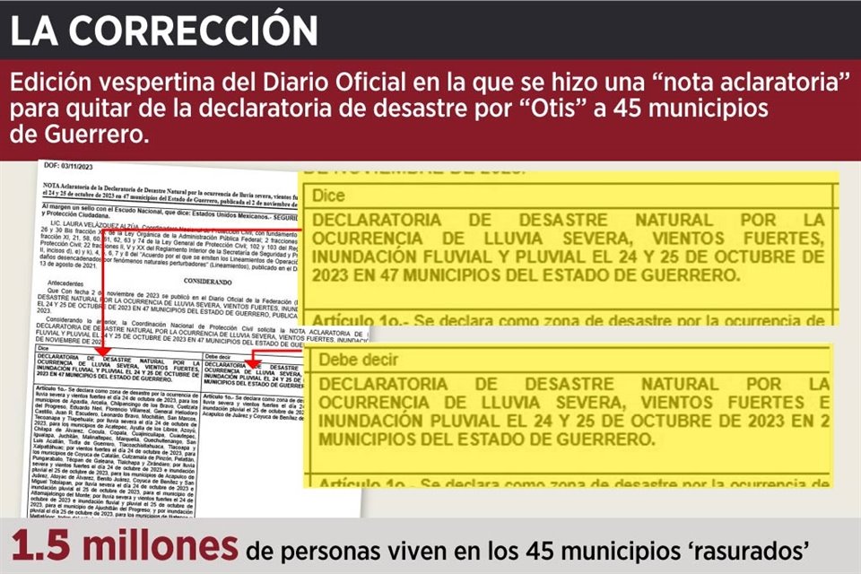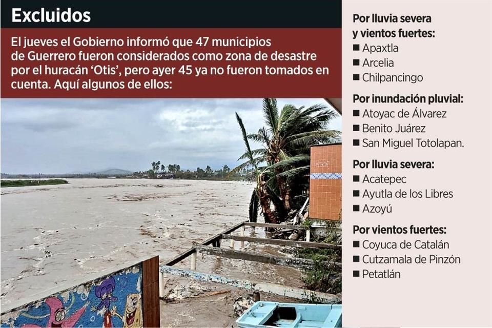 Sin explicar las razones, la Secretaría de Gobernación eliminó en menos de 24 horas a 45 municipios de la declaratoria de emergencia por las lluvias del huracán "Otis".
