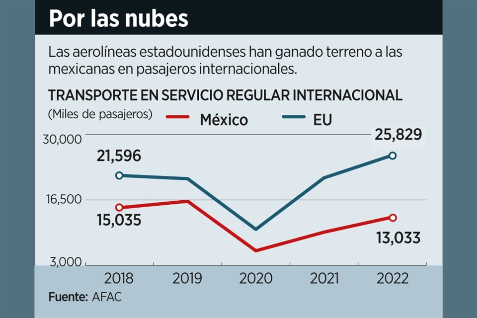 En los 20 meses que México no ha podido recuperar la Categoría 1 en seguridad aérea las aerolíneas nacionales han perdido terreno ante las estadounidenses.