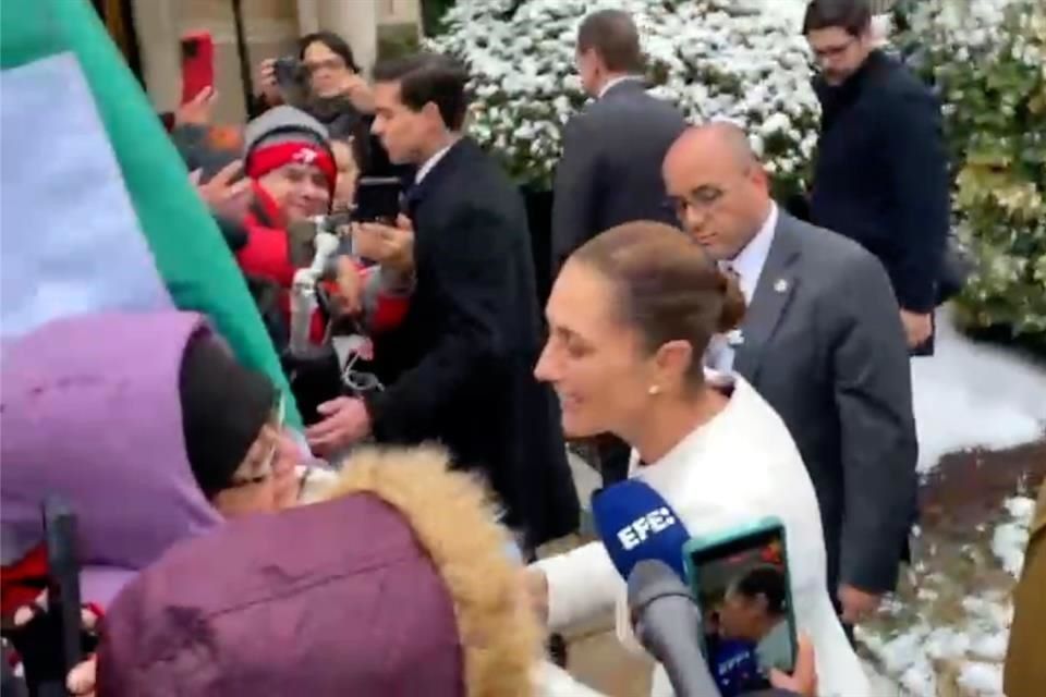 Reciben a Presidenta Sheinbaum con mariachi en EU