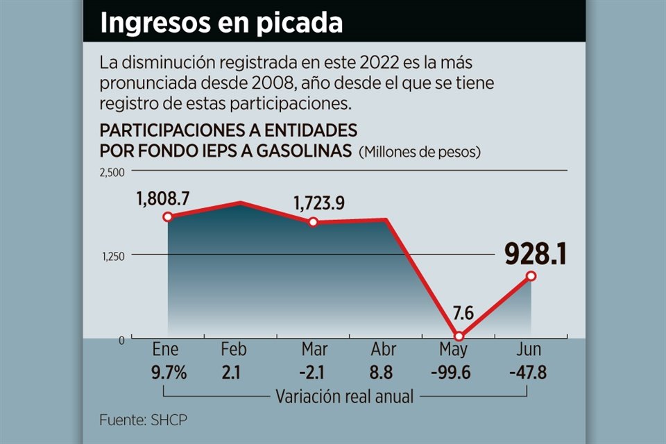 En el primer semestre del año, los estados obtuvieron por el Impuesto Especial sobre Producción y Servicios (IEPS) a gasolina estatal 23.3 por ciento menos que en 2021, debido a que los recursos están siendo retenidos por una medida implementada por la SHCP.