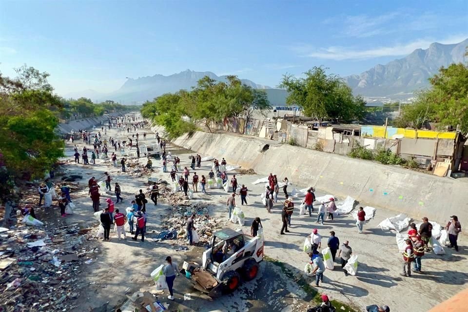Con la participación de más de 400 funcionarios públicos, el municipio de Santa Catarina organizó una brigada de limpieza en el cauce del Arroyo El Obispo, a la altura de la colonia San Francisco.