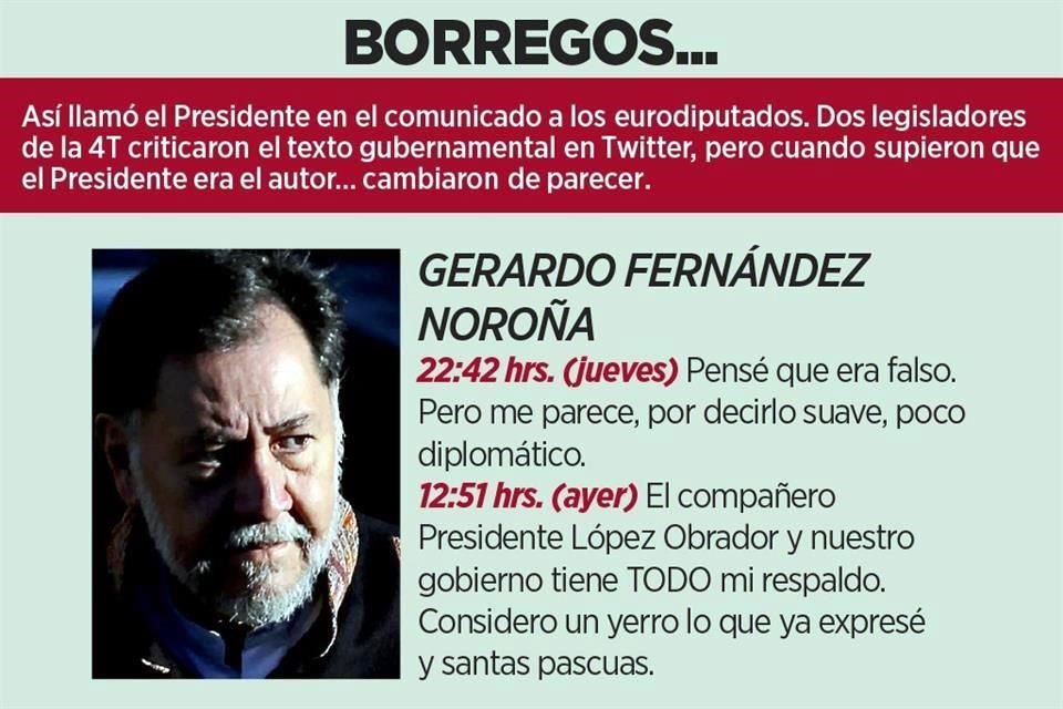 Diputados federales de las bancadas de Morena y el Partido del Trabajo descalificaron el pronunciamiento del Presidente Andrés Manuel López Obrador, en el que llamó borregos a los integrantes del Parlamento Europeo, pero luego cambiaron su postura.