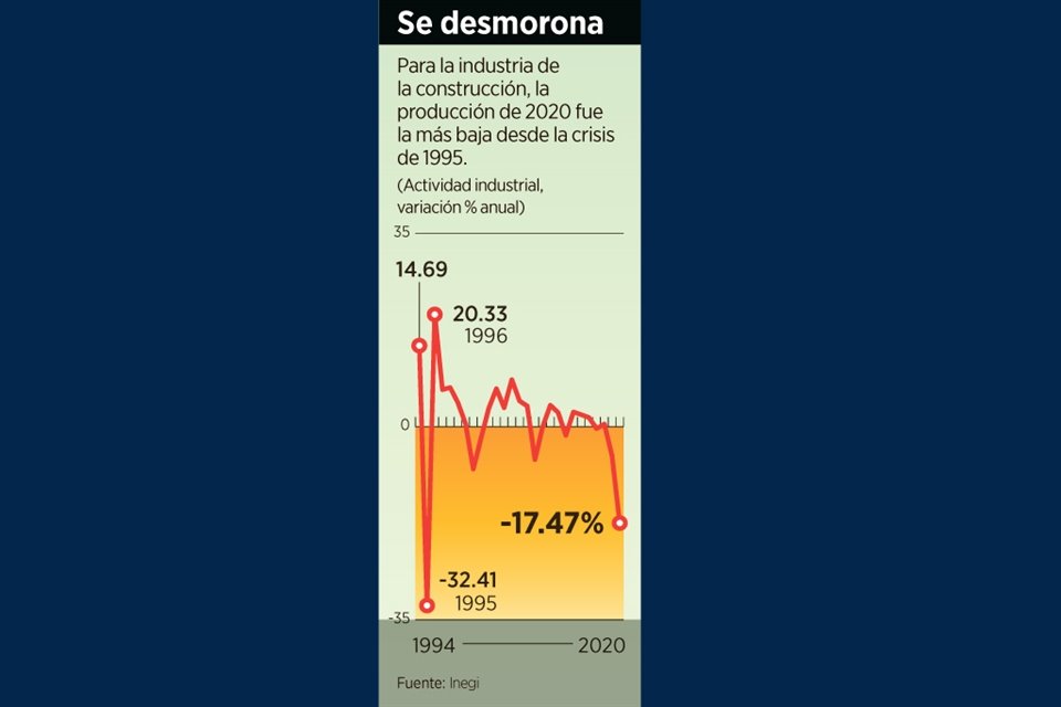 En 2020, la industria de la construcción registró una baja acumulada de 17.45%, la más profunda desde 1995, debido al freno por la pandemia.
