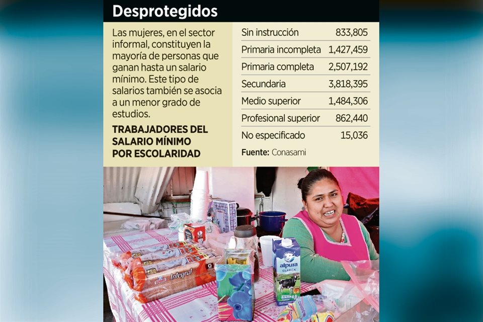 En el País existen 10.9 millones de trabajadores que perciben hasta un salario mínimo, la mayoría mujeres que trabajan en el sector informal, según cálculos de la Comisión Nacional de Salarios Mínimos (Conasami).