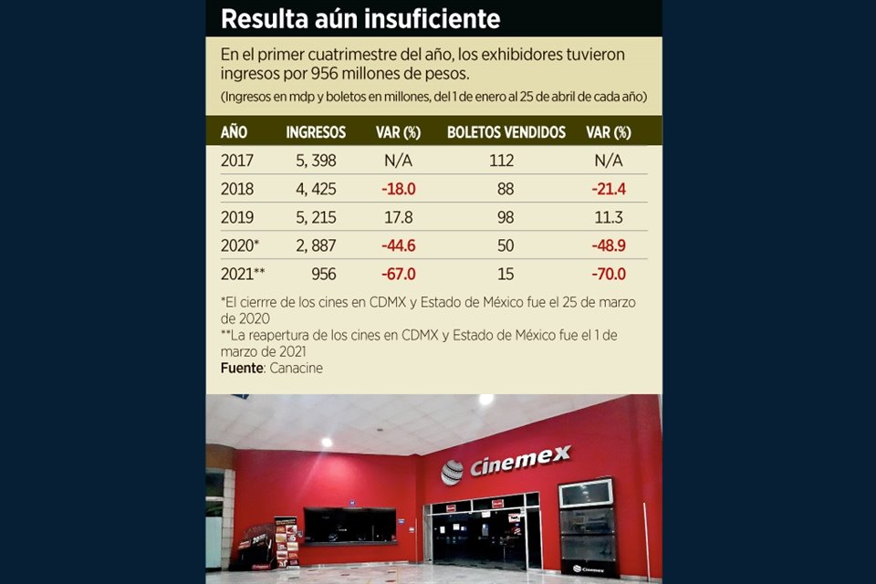 Con tan solo el 57 por ciento de los cines del País abiertos, los exhibidores han logrado mantener la venta de boletos por encima del millón de boletos en los últimos seis fines de semana, de acuerdo con la Cámara Nacional de la Industria Cinematográfica (Canacine).