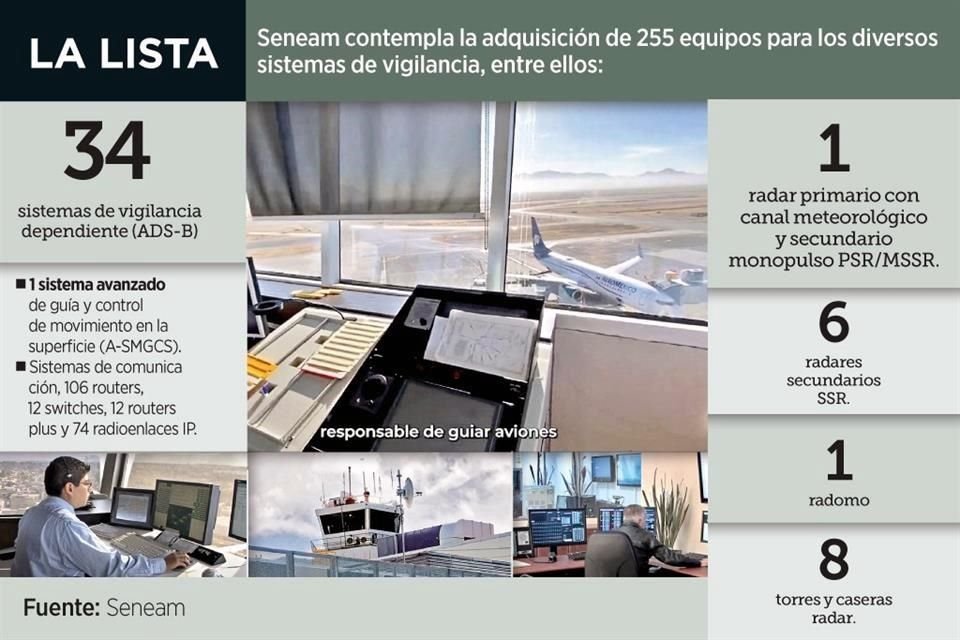 Servicios a la Navegación en el Espacio Aéreo Mexicano (Seneam) le solicitó a la Secretaría de Hacienda y Crédito Público (SHCP) 780 millones 646 mil 665 pesos para adquirir 255 diversos equipos para el sistema de vigilancia.