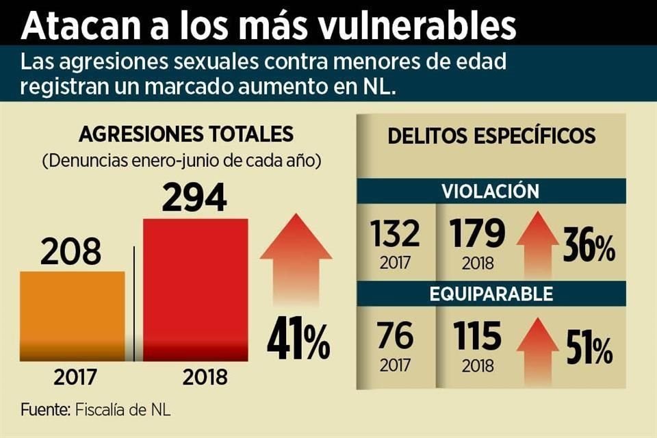 Las denuncias de abusos sexuales contra menores de edad crecieron un 41 por ciento durante la primera mitad del 2018, alcanzando niveles sin precedente en Nuevo León.