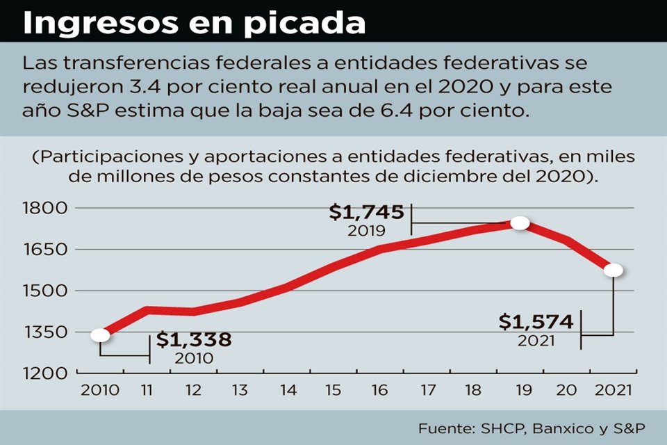 Debido a la escasez de apoyos federales en el 2020 para Estados y Municipios, el gasto en inversión de éstos en México se redujo en 9.0 por ciento anual real, reportó S&P Global Ratings.