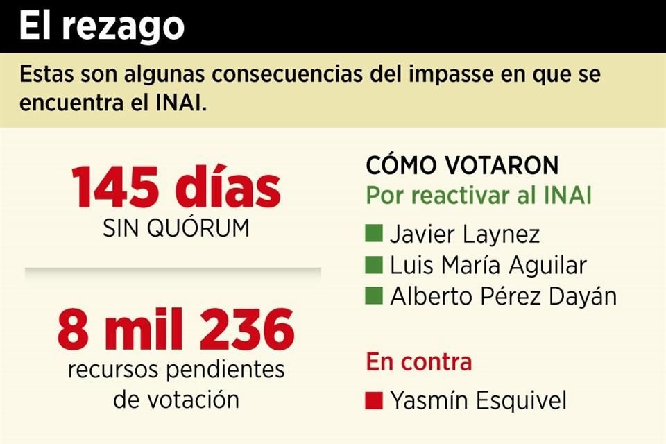 La Suprema Corte de Justicia de la Nación (SCJN) revivió al Instituto Nacional de Transparencia y Acceso a la Información (INAI), pues autorizó que sesione con sólo cuatro de sus siete comisionados.