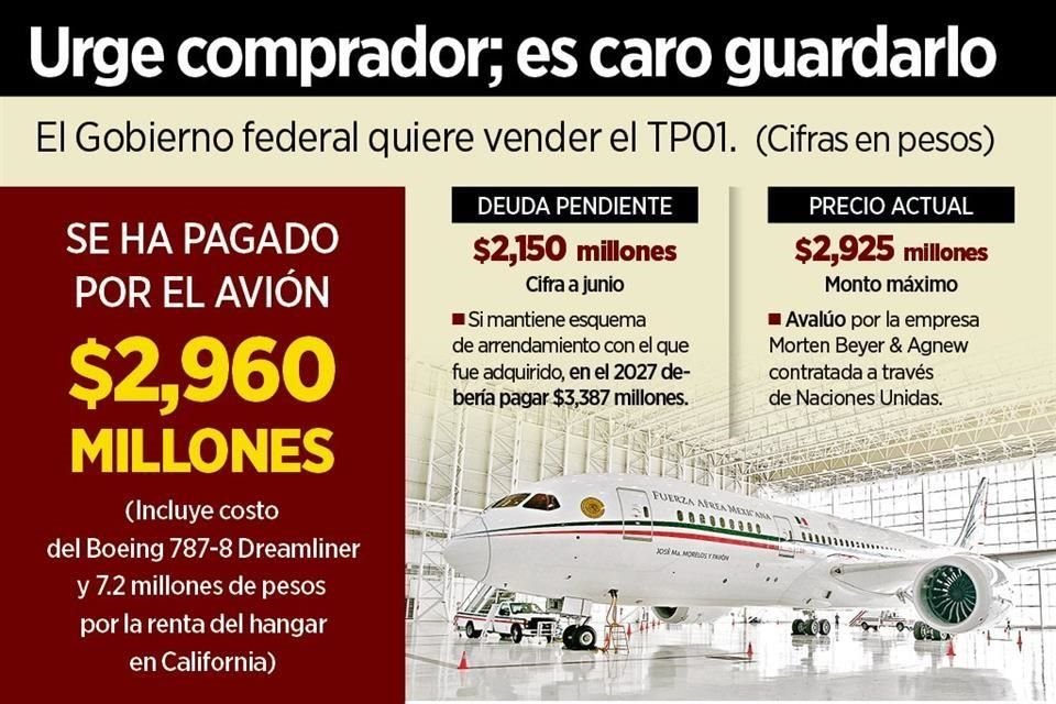El avión presidencial lleva 190 días parado en un hangar de California, Estados Unidos, sin avanzar en su venta.