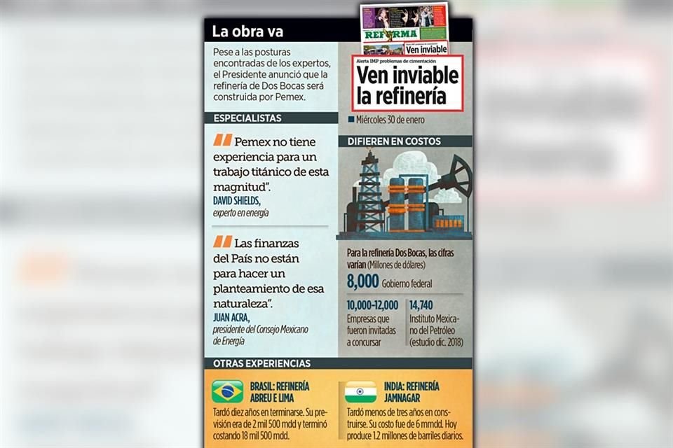 El Presidente Andrés Manuel López Obrador decidió que, como se hacía antes, la refinería de Dos Bocas se construya bajo la tutela de Pemex y la Secretaría de Energía.