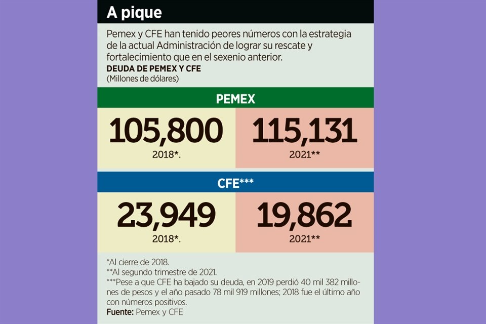 Pese a la promesa de recuperar y fortalecer a Pemex y a CFE, la política energética a la mitad de la actual Administración ha debilitado a estas empresas.