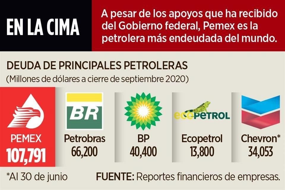 Pemex fortalece su lugar como la petrolera más endeudada del mundo, pese a las transferencia por 5 mil millones de dólares que recibió el gobierno en 2019.