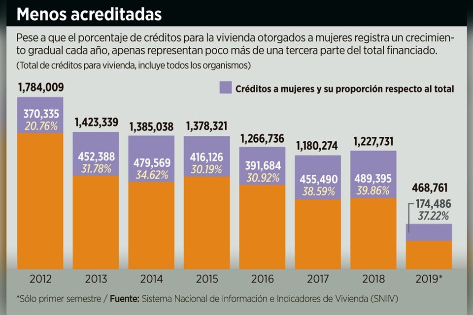 De 468 mil 761 créditos para la vivienda otorgados en la primera mitad del año, apenas 37.2 por ciento se colocó entre mujeres.