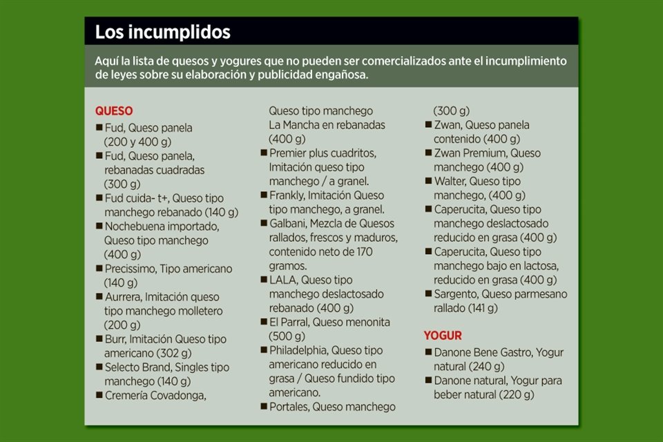 Las marcas de quesos y yogur que fueron retiradas de la venta al público podrán regresar al mercado hasta que cumplan con las normas sobre su elaboración y publicidad engañosa, advirtió Ricardo Sheffield, titular de Profeco.