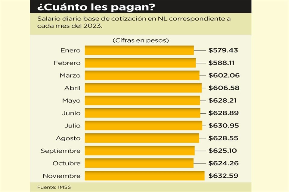 En noviembre, el salario diario base de cotización en el sector manufacturero de Nuevo León, el cual emplea a alrededor de una tercera parte de los trabajadores formales en la Entidad, subió 11.9 por ciento a tasa anual, para ubicarse en 632.59 pesos.