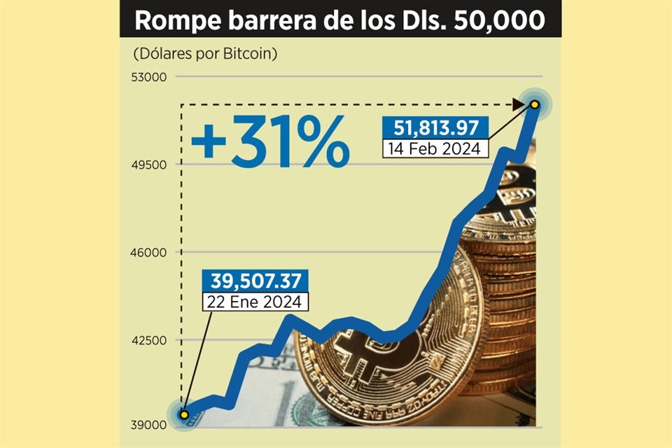 El Bitcoin superó ayer los 51 mil dólares y con ello registró un avance de 31.2 por ciento en sólo 23 días.